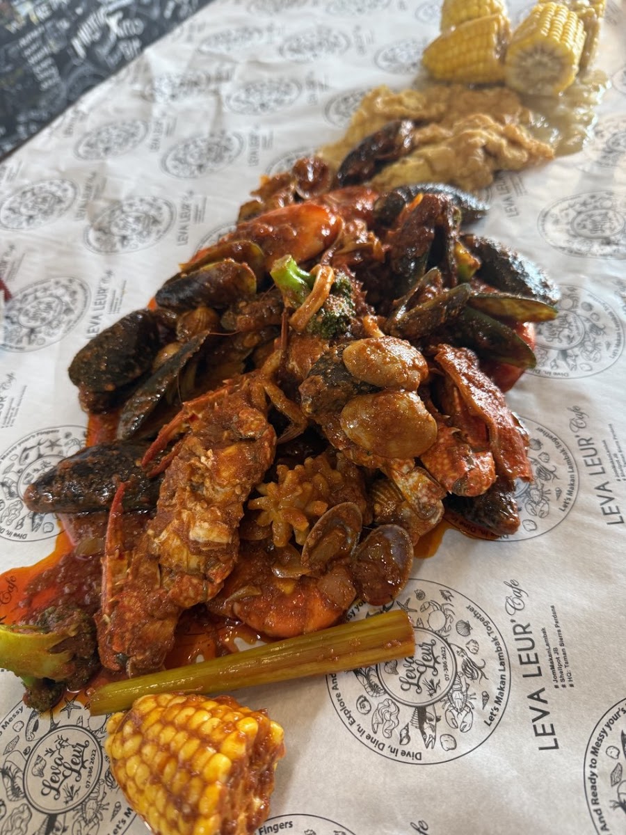 It's not the easiest of places to get to, but it's definitely worth the trip for seafood lovers! Leva Leur serves halal seafood the shellout style, where a tablecloth is draped across your table, and hot piping seafood gets placed directly on your table for you to savour. The cafe offers a wide variety of shellout seafood dishes with standout flavors like butter creamy, butter garlic, and lambak cheese sauce, while the dried curry, sambal tumis, and original lambak sauce (salted egg) were also decent. I had the black pepper previously, which was also pretty good, but didn't have it this time round as my friend can't take spicy food. You can also opt for extra sauce to drench your rice or mantou buns in, although the seafood is already generously coated. Among the seafood selections, the scallops and deep-fried squid shined the most. Most of the prawns were enjoyable, although a few were slightly mushy. The lobster, bamboo clams, and sambal sotong were a tad overcooked but still quite tasty. The perfectly fried mantous were excellent for scooping up the flavorful sauces, adding to the overall delightful dining experience.